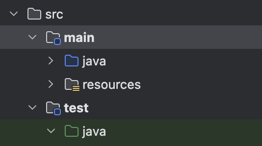 src 하위에는 main 디텍터리도 있고, test 디렉터리도 있다.