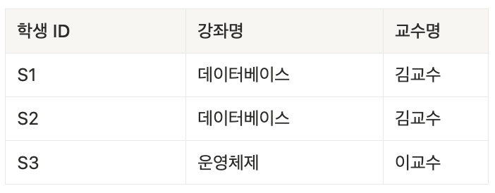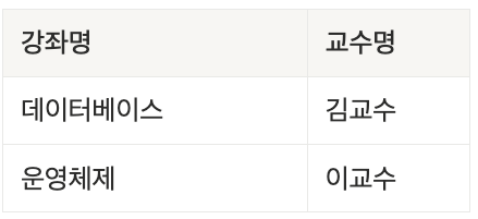 또한 학생 ID와 강좌명, 두 개의 컬럼을 가진 테이블 역시 (학생 ID, 강좌명)의 후보키(기본키)로만 남게 된다.